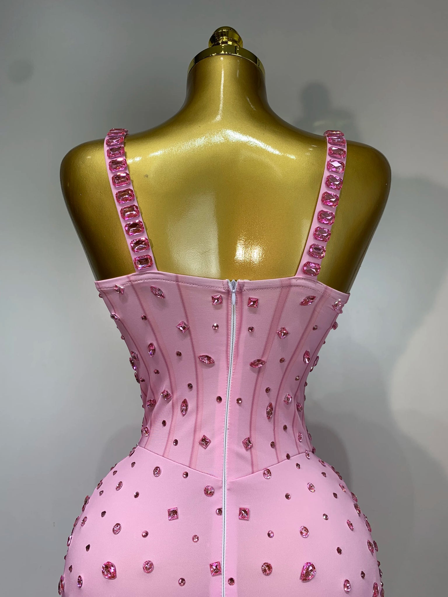 XIAMEN Pink Crystal Corset Gown