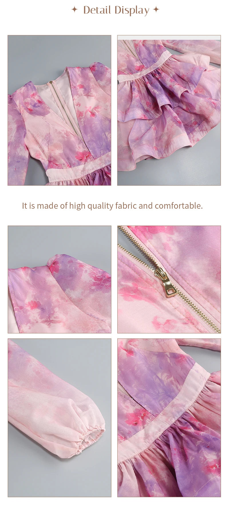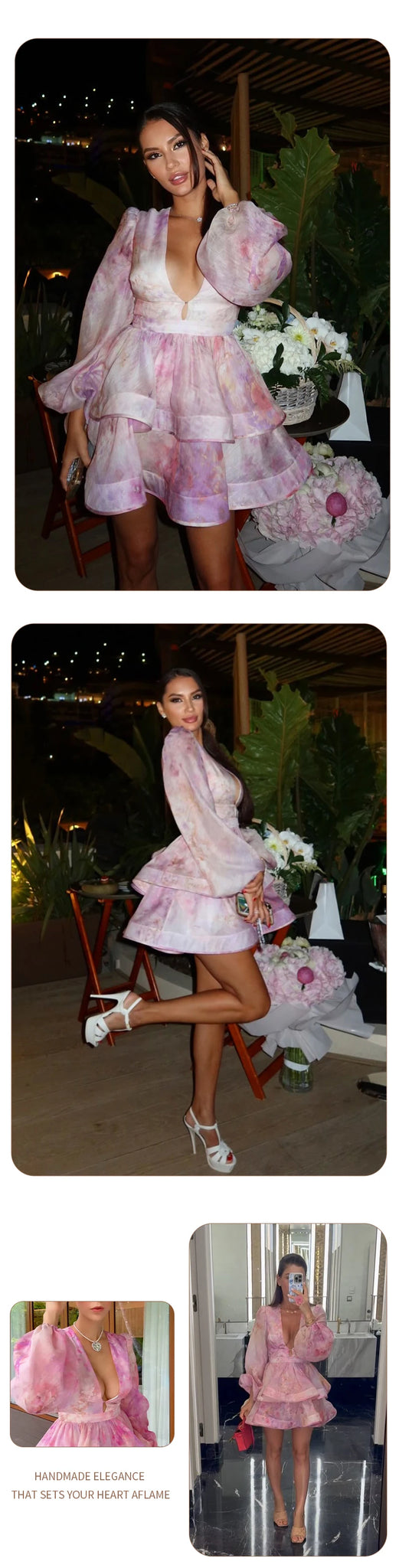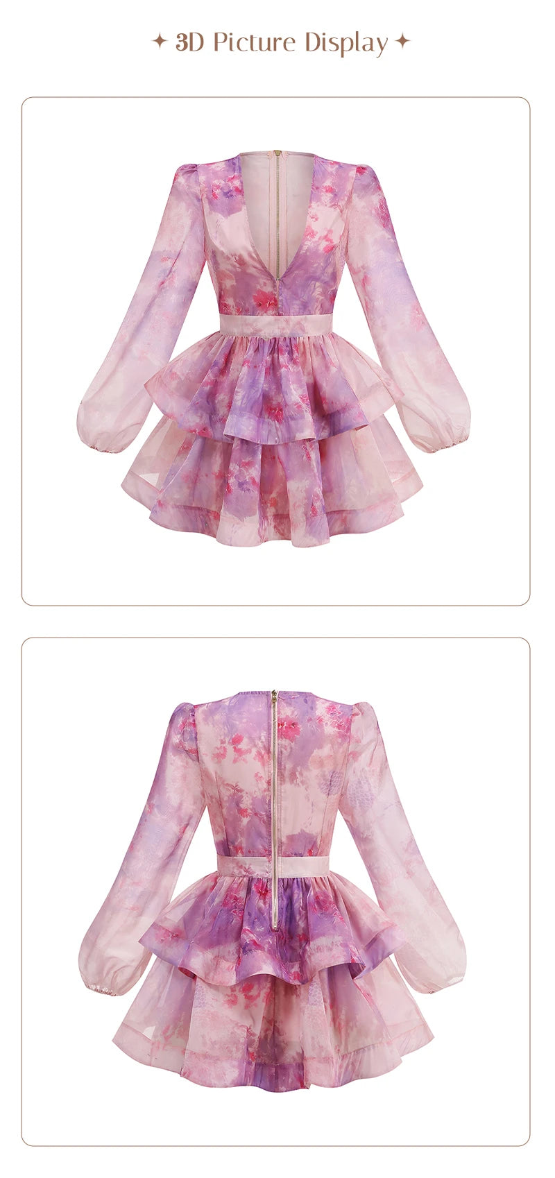 Turn heads in this ultra-feminine Blush Bloom Watercolor Peplum Mini Dress, designed for those who adore delicate romance and elevated resort vibes. This dreamy piece features a flattering deep V-neckline, long sheer puff sleeves, and a layered peplum waist that cinches you in for a princess-like silhouette. The soft, floral watercolor print brings a touch of pastel paradise, making it perfect for garden parties, sunset cocktails, vacations, or bridal events.