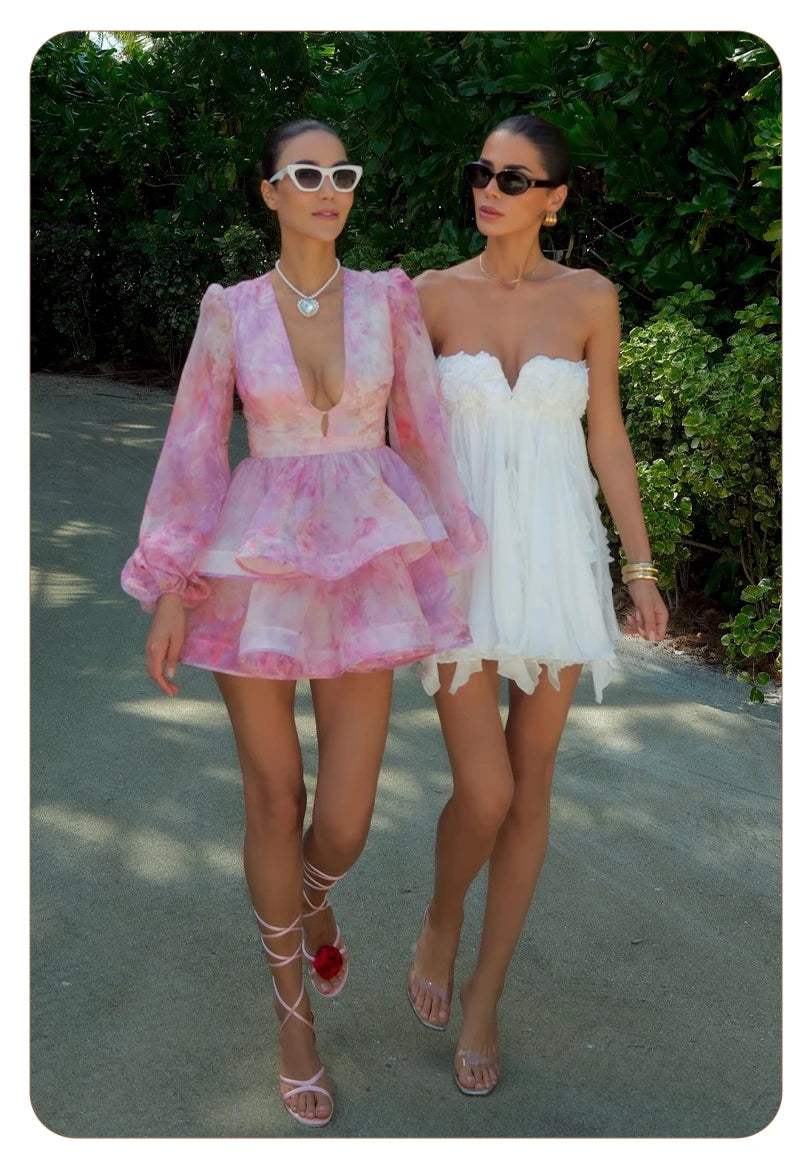 Crafted from lightweight organza-like fabric that adds ethereal movement, this dress combines elegance with a playful edge. Pair it with dainty heels and pearl accessories for the ultimate luxury resort look.