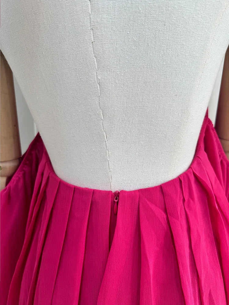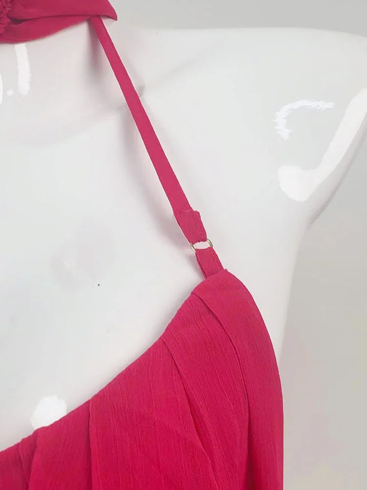 Turn heads in this effortlessly stunning hot pink off-shoulder mini dress, perfect for your next beach getaway, sunset dinner, or tropical party. Designed with breezy layered chiffon and a flattering A-line silhouette, this dress features a halter neckline with a chic ring detail and long sheer sleeves that fall elegantly off the shoulder. The flirty ruffled hem and bold color bring a playful charm, while the lightweight fabric ensures all-day comfort and movement. Whether you're walking the boardwalk or dancing at a summer festival, this vibrant piece is your go-to for glam and glow.